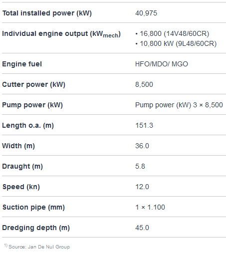 19 August 2015 Van Oord, the leading dredging and marine contractor based in Rotterdam, has placed an order for two trailing-suction hopper dredgers. Each vessel will feature a complete MAN Diesel & Turbo propulsion package with: • MAN 6L48/60CR engines • RENK gearboxes with PTO • MAN Alpha CP Propeller systems • AHT (Alpha High Thrust) Propeller nozzles • MAN Alpha AT3000 propulsion-control systems. Jan De Nul Group, the leading dredging specialist, is set to further expand its modern fleet with a self-propelled, cutter-suction dredger to be built at Croatian shipyard, Uljanik Brodogradiliste in Pula. The vessel, currently designated ‘JDN8069’, will feature 1 × MAN 14V48/60CR + 2 × MAN 9L48/60CR engines as well as 3 × step-up, RENK Rheine gearboxes for a diesel-electric plant. RENK will also deliver the gearboxes for the cutter-head drive as well as for the dredger and booster pumps. Upon completion, the vessel will be the largest of its type in the world. Lex Nijsen – Vice President and Head of Four-Stroke Marine – MAN Diesel & Turbo, said: “Jan De Nul Group knows MAN very well and much of its fleet features our engines. This new vessel represents a significant development within the dredger segment in that, up to now, the largest installed power on similar vessels was approximately 27-28 MW, a figure the new vessel easily surpasses. I’m confident this order will help Jan De Nul Group maintain its strong presence in the dredger market.” Popular dredging choice The MAN L/V 48/60CR engine type is one of the most successful engine types used in dredging applications. Among the 56 such engines MAN Diesel & Turbo currently has on order for various marine applications, 14 alone are bound for installation aboard cutter- and hopper-dredger newbuildings for customers in Benelux and China. All engines will be built at MAN’s main facility in Augsburg, Germany. The 48/60CR engines are equipped with key, in-house-developed technologies to optimise their economic and ecological performance, including: • high-efficiency, TCA-type, exhaust-gas turbochargers • advanced, electronic fuel-injection systems • electronic hardware and software for engine control, monitoring and diagnosis in the form of MAN Diesel & Turbo’s proprietary SaCoSone system. The new vessel will be able to boast of over 40,000 kW total diesel installed power, making it approximately 50% more powerful than the Luxembourg outfit’s own ‘J.F.J. De Nul’, currently the largest cutter-suction dredger in the world. JDN8069 is due for delivery at the beginning of 2017 and will operate globally. About Jan De Nul Group
