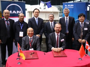 Ceremony at Marintec notes successful market strategy 15 December 2015 MAN Diesel & Turbo marked the sale of its 60,000th turbocharger after 80 years of turbocharger business, during the Marintec 2015 marine trade fair in Shanghai, by making a presentation to turbocharger customer, China Merchants Energy Shipping Co. Ltd. (CMES). The milestone has been reached with the (coming) delivery of 2 × TCA66-21 turbochargers, bound for an MAN Diesel & Turbo MAN B&W 7G80ME-C9 two-stroke engine powering a VLCC. The ceremony took place at the MAN stand at the trade fair where MAN Diesel & Turbo’s CEO, Dr Uwe Lauber, presented representatives from CMES with tokens of the company’s appreciation. At the presentation, Lauber said: “Understanding markets starts by listening to the customer. We have enjoyed an outstanding cooperation with CMES over many years, and are delighted to be able to celebrate this milestone with such a valued partner.” He continued: “Over the last two decades, the level of shipbuilding activity in China has increased dramatically and China is of vital strategic importance for our Turbocharger Business. MAN Diesel & Turbo is one of the leading turbocharger suppliers for marine diesel-engine manufacturers in China and, with our localisation strategy in the shape of our facility in Changzhou, we are able to support our European production, shorten delivery times and cut transportation costs for the benefit of our Chinese customers.” CMES President Capt. Xie Chunlin, accepted a commemorative certificate and ornamental turbocharger turbine-blade on behalf of his company. Also present during the ceremony were representatives from Hoi Tung Marine Suppliers, MAN Turbocharger business partners in the Chinese market and representatives from CSSC-MES Diesel Co., Ltd.. Earlier this year, Associated Maritime Co. (Hong Kong) Ltd. (AMCL), the management company of China Merchants Energy Shipping Co., Ltd. also took the opportunity to sign a premium maintenance contract with MAN Diesel & Turbo covering the service of 36 MAN turbochargers with effect from the start of 2016. The TCA series Also speaking at the Marintec ceremony, Dirk Balthasar – Head of Global Turbocharger Sales and Promotion – MAN Diesel & Turbo, said: “Through continuous development, TCA turbochargers have become the most reliable and proven series in the market. Since its initial introduction, the TCA has improved and undergone several technological developments, and the product we deliver today bears all the benefits of these.” Balthasar added: “Just to name one of them, we have re-designed the TCA’s bearings to increase their overall lifetime. As a result, we were able to announce last year that bearing inspections are no longer required until the first main overhaul. The direct benefit for customers is savings in both time and money. Going from dry-dock to dry-dock without any intermediate inspection is now a reality.” The VLCC will be delivered in 2016 from Shanghai Waigaoqiao Shipbuilding Co., Ltd. and China Merchant Energy Shipping decided to source the engine and turbochargers from the same manufacturer. The CSSC-MES Diesel (CMD)-built MAN B&W 7G80ME-C9.2 main engine is part-load optimised with exhaust-gas bypass tuning and integrated with the two MAN TCA66 turbochargers. Turbocharger no. 60,000, with serial number 7037348, was assembled at the MAN Turbocharger factory in Changzhou where most Chinese turbocharger components are localised. Core components, such as bearings and rotors, are produced at MAN Diesel & Turbo’s German facilities. The MAN TCA Turbocharger series was introduced to the market in 2003 and has more than 7,000 references. Globally, TCA turbochargers are mainly employed in two-stroke applications, but also have multiple four-stroke references. About MAN Turbocharger MAN Diesel & Turbo developed its first turbochargers in 1934. As an industry leader, MAN Turbocharger was first to set a standard for inboard, plain bearings for turbochargers with the TV624 type. In 2000, Czech turbocharger manufacturer PBS Turbo joined the MAN family and is today an affiliate within MAN Diesel & Turbo. PBS Turbo produces all TCR sizes from TCR10 up to TCR18, while larger sizes – TCR18 to TCA88 ¬– are produced by MAN Diesel & Turbo in Augsburg. Furthermore, other, current turbocharger series – MAN TCA and MAN TCR – are licensed to three major, global engine builders: Mitsui Engineering and Shipbuilding, Kawasaki Heavy Industries and STX Heavy Industries. Today, MAN is one of the leading suppliers of modern turbocharging solutions such as two-stage turbocharging or technologies tailor-made for Tier III applications. Its portfolio comprises turbochargers for marine engines, power generation, locomotive and mining applications. About China Merchants Energy Shipping Co., Ltd. Affiliated to the China Merchants Group, China Merchants Energy Shipping Co., Ltd. (CMES)was jointly established by the Sinopec Group, Sinochem Group, COSCO Group and CNOOC Group on 31 Dec 2004 based on the integrated ocean shipping assets under China Merchants Group. CMES runs a modern and diverse fleet of ocean-going tankers, bulk carriers and liquefied natural gas ships, covering most commodities of energy transportation. CMES operates and manages the earliest and most experienced oil-tanker and bulk-carrier fleet and is one of the largest energy-transportation enterprises in China. The fleet consists of 38 oil tankers of about 10 million DWT, 13 bulk carriers of 1.56 million DWT and 6 LNG ships of 0.9 million cubic meters (0.5 million DWT), with a total capacity of 11.28 million DWT at the end of Feburary,2015. An additional 20 vessels are on order with delivery due over 2015 to 2017. CMES is building up a well-structured, highly competitive and sustainable developing fleet. CMES, jointly with COSCO Group, established the first LNG fleet in China and six LNG carriers are now fully engaged in the importation of LNG