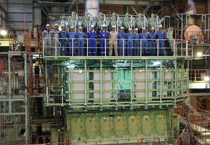 The Mitsui-MAN B&W 7G50ME-C9.5-GIE at Mitsui’s Tamano Works. Image by MAN Diesel & Turbo. MAN Diesel & Turbo, Press Release |