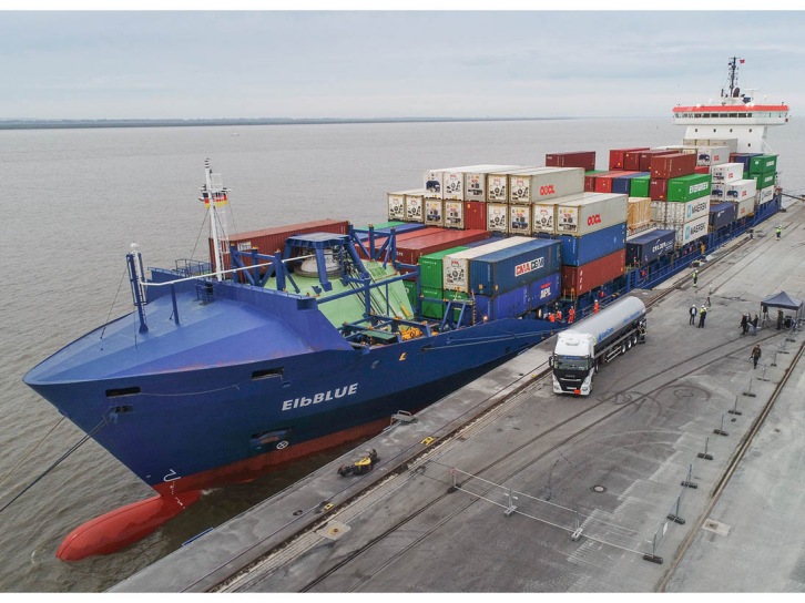 Container Ship Reduces Emissions through Synthetic Fuel World's first successful use of synthetic natural gas in commercial shipping cuts greenhouse gas April 6, 2022 MAN Energy Solutions reports that the 1,036-TEU container ship, ‘ElbBLUE’ – the former ‘Wes Amelie’ – has reduced its greenhouse gas (GHG) emissions by 27% by operating on a blend of climate-neutral, synthetic natural gas (SNG) and conventional liquefied natural gas (LNG), compared to LNG alone. Compared with heavy fuel oil (HFO), GHG emission reduction was even as high as 34%. The data has emerged from measurements initially carried out on board the ship in September 2021 when the ElbBLUE became the first container ship worldwide to replace a portion of its bunkered gas fuel (around 50%) with SNG. Dr Uwe Lauber, CEO of MAN Energy Solutions, said: "With this project, we have proven the technical viability of our concept of the maritime energy transition. Today, more than ever, we are convinced that climate-neutral, synthetic fuels point the way to green shipping – and even further beyond.” Lauber continued: “The current, global, political situation underscores the future role that synthetic fuels can play in a diversified energy supply in that they point the way toward less dependence on raw material deposits, suppliers and price fluctuations. As a result of the military attack on Ukraine in violation of international law, LNG prices, for example, have risen massively in recent weeks and are now at a similar level to SNG. If production capacity can be built up quickly and synthetic fuels made available to the market, SNG could become a climate-friendly and – in the long term – economical alternative to fossil fuels in shipping.” Pure SNG to cut GHG by 80% Stefan Eefting, Senior Vice President and Head of MAN PrimeServ Augsburg, said: “With this pilot project, we have proven that any LNG-powered ship can also operate with green SNG from power-to-X. Even with a blend of just 50% SNG, GHG and pollutant emissions are significantly reduced. When operated exclusively on SNG, we would expect a reduction of at least 80% in GHG emissions for modern ships.” Gas operation also drastically reduces other polluting emissions compared to HFO. In the case of the ElbBLUE, nitrogen oxide emissions (NOx) dropped by almost 87%, while emissions of sulphur oxides (SOx) and particulates were almost completely eliminated (~99%). These values were achieved in both the exclusive operation on LNG and on a blend of LNG and SNG.