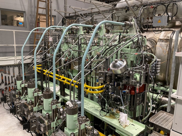 5G70 ME-GA Rendering. Image by MAN Energy Solutions. Thomas S. Hansen, Head of Promotion and Customer Support, MAN Energy Solutions, said: "The first MAN B&W ammonia engine will be a 60-bore engine, which will be applicable to a very wide range of vessel types. The interest in this engine is very high and we have received many queries across basically all large merchant-marine vessels. MAN Energy Solutions expects a quick uptake of ammonia-fuelled engines towards the end of the current decade." Project steps The ammonia engine R&D project started in 2019 with a pre-study and investigation of ammonia combustibility. The following year, a second test-engine arrived in Copenhagen, enabling a parallel-test engine setup with different fuels at RCC; HAZID workshops on the engine concepts were performed simultaneously. In 2021, the ammonia fuel-supply system and auxiliary systems were specified with the highest possible focus on safety, while 2022 saw the installation of the same systems at RCC with instrumentation for test engine No. 1 for 1-cylinder ammonia testing initiated. In 2023, ammonia bunkering and service-tank facilities were built with all auxiliary systems enabling a full containment of ammonia in the unlikely event of a leak. Similarly, all auxiliary systems were initially tested with water, followed by ammonia. MAN Energy Solutions, Press Release