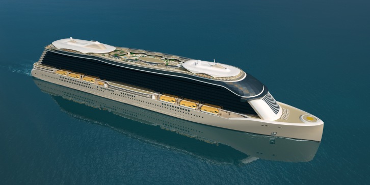 Image by Meyer Werft GmbH Almost traditionally, MEYER shows a long-term view into the future of cruising at Seatrade Cruise Global. The newest future concept is called ORIGIN and fulfils future living needs and global trends with weather-independent features that work all year round. In addition, the new model emphasizes rethinking the accommodation areas for an efficient passenger flow. One main feature is the innovative and asymmetric shape of the superstructure with an advanced transportation system and decentralized public areas will create new passenger experiences. Key point of the design concept is a vessel without the typical "ship-look-a-like" exterior and interior.