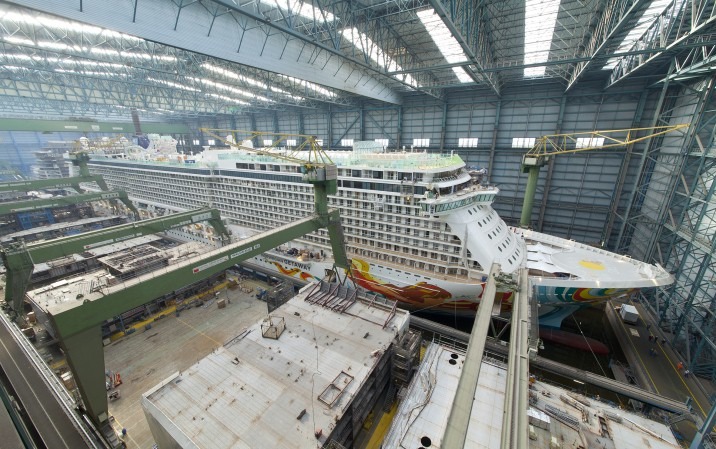 Norwegian GETAWAY presently in MEYER WERFT's building dock II. Image by Meyer Werft GmbH