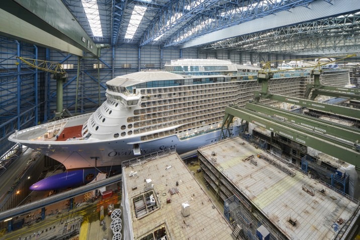 Float-out likely to start on 18 February 2016 Feb 16,2016 On 18 February 201 the 168,666-gt cruise ship Ovation of the Seas, whose construction has taken merely 18 months, will float out of MEYER WERFT's covered building dock II. Over the last few weeks the shipyard has been busy conducting extensive tests, interior work and machinery trials. The float-out of the ship, which is built for the US cruise operator Royal Caribbean International will commence around 12.30 p.m. Following the float-out and more tests to be carried out in the harbor, the ship will be berthed alongside the yard's outfitting pier. Delays in the time schedule due to weather conditions may occur.