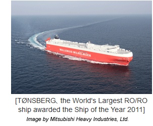 TØNSBERG, MHI's Massive RO/RO Vessel, Awarded "Ship of the Year 2011":