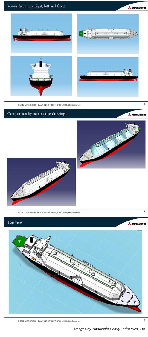 Today Mitsubishi Heavy Industries, Ltd. (MHI) began construction of the first ship in its "Sayaendo" Series, which it has developed as a new-generation liquefied natural gas (LNG) carrier, at the company's Nagasaki Shipyard & Machinery Works. The LNG carrier is one of two ships ordered jointly by Osaka Gas Co., Ltd., and Mitsui O.S.K. Lines, Ltd. (MOL) in October 2011. The Sayaendo Series has a hull shape that evolved from LNG carriers with Moss-type* hemispherical tanks, and it offers significant improvements in fuel consumption and maintainability. The unit now being built is slated for delivery in the fiscal year 2014 (ending March 31, 2015).