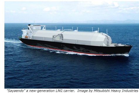 To protect its four Moss spherical tanks, the Sayaendo features a peapod-shaped continuous cover integrated with the ship's hull in lieu of conventional hemispherical covers. This innovative configuration enables reductions in size and weight while maintaining the ship's overall structural rigidity. The continuous cover over the tanks also improves aerodynamics by substantially reducing air resistance that acts as a drag on ship propulsion. For its main power plant the Sayaendo adopts MHI's "Ultra Steam Turbine Plant" (UST), a new turbine that provides higher thermal efficiency through effective use of thermal energy by reheating steam. Through downsizing, weight reduction and hull line improvement, Sayaendo ships achieve a substantial 20% reduction in fuel consumption compared to conventional ships. With a conventional cover configuration, pipes, wires and catwalks atop the tanks are supported by complex structures. By covering the tanks with an integrated cover and making those supporting structures unnecessary, the new design also improves maintainability. In addition, CO2 emissions are reduced as a result of decreased fuel consumption, and response to environmental issues is further enhanced with installation of a ballast water treatment system, which addresses impact on the marine ecosystem. In April of this year MHI and Imabari Shipbuilding Co., Ltd. jointly established MI LNG Company, Limited, to handle the design and marketing of LNG carriers. The current carrier order, however, will be handled by MHI because negotiations for its construction (as was the case with the Sayaendo carrier ordered by Mitsui O.S.K. last month) predate the establishment of MI LNG. After receiving an order for two ships in October 2011, to date MHI has received orders for seven Sayaendo series carriers in total, including the current order. The Sayaendo has been drawing great attention in the marine transport industry and is quickly becoming a leading force in the movement to develop energy-saving "eco-ships" offering enhanced environmental performance – an area in which the Japanese shipbuilding industry is actively engaged. Owing to the suspended operation of nuclear power plants in Japan in the wake of the Great East Japan Earthquake, as well as a expanded shale gas production in the U.S., demand for LNG and LNG carriers has been expanding not only in Japan but globally. As such, MHI will continue to expand its efforts to secure new orders for Sayaendo and other types of LNG carriers. Note: The Ichthys LNG Project is a joint venture between INPEX CORPORATION of Japan (operator of the project) and Total S.A. of France, with participation from Japanese gas and electric power companies. The project aims to build a major facility in Darwin to liquefy gas extracted from the Ichthys gas-condensate field located approximately 200 kilometers off the coast of Western Australia. Gas production is scheduled to begin by the end of 2016. Mitsubishi Heavy Industries, Ltd. press release |