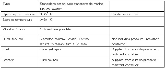 Commercialization of Compact, High-efficiency, High-reliability System Now Clearly in View Tokyo, November 13, 2013 An innovative closed-cycle fuel cell system jointly developed by Mitsubishi Heavy Industries, Ltd. (MHI) and the Japan Agency for Marine-Earth Science and Technology (JAMSTEC) has become the world's first system of its kind to perform successfully in a test to supply power to observation equipment in actual use at sea. With this success, this compact fuel cell system, which has cleared earlier technical hurdles through the adoption of a new gas circulation system and other innovations, is expected to supersede conventional storage batteries and fill a major role as an underwater power supply for operating seabed-installed observation instruments and marine research vessels over long periods of time. The unit that passed the ocean field test is a solid-polymer type high-efficiency multi-less* (HEML) fuel cell system. In testing, the fuel cell system equipped on JAMSTEC's "Deep Tow" marine research towing unit was submerged to a depth of 180 meters (m) to supply power simultaneously to two units of observation equipment. The test operation confirmed that power was supplied stably and that the equipment receiving power from the system continued to perform their observation duties without interruption. Today many different observation platforms are in use at sea, including deep-sea locations: for example, manned submersible ships, unmanned research vessels, towing units and landers. In recent years, however, as their equipment has become increasingly sophisticated and observation durations have lengthened, power requirements have grown to a level beyond the capacity of storage batteries having limited output capabilities. To supply the power needed, closed-cycle fuel cell systems have for some time been under development; but favorable results had not been obtained owing to issues such as the inability to achieve compact system size because of the need for gas circulation equipment and humidifiers to add dampness to the gas, compounded by the inability to prevent minuscule leaks of hydrogen gas. The HEML fuel cell system newly developed by MHI and JAMSTEC has, through the adoption of a new structure in the gas circulation system, etc., resolved these various problems that until now impeded the creation of a viable system. Specifically, the structure uses valve operation to switch between the upstream and downstream sides of the fuel cell stack at fixed intervals – a configuration that has eliminated the need for a blower and humidifier, which together made large system size inevitable. Also, by making the fuel cell stack gastight, hydrogen gas leaks have been eliminated. The achievement of a compact-sized unit further enables reduction in the system's own energy consumption and enables faster startup time. Now that commercialization of a compact, high-efficiency, high-reliability fuel cell system has come into view with the successful testing of MHI and JAMSTEC's new system, going forward development will proceed further toward the achievement of a fully practical closed-cycle fuel cell system offering output in the several kilowatt (kW) class. * Note: Blower-less, humidifier-less and leak-less Overview of the Closed-cycle HEML Fuel Cell System