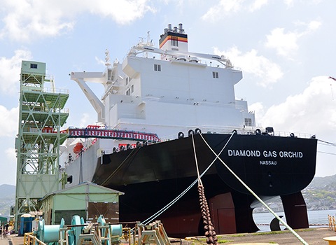 The Diamond Gas Orchid features LOA (length overall) of 293.5m, width of 48.94m, depth of 27.0m, and draft of 11.05m. Deadweight capacity is approximately 73,800 tons, and the total holding capacity of the tanks is 165,000m3. Launching took place in March 2017. Construction was performed by Mitsubishi Heavy Industries Marine Structure Co., Ltd., a Nagasaki-based MHI Group company. The Sayaringo STaGE succeeds the "Sayaendo," a vessel highly acclaimed for its improved Moss-type spherical tanks that deliver a high level of reliability. The adoption of apple-shaped tanks in the new Sayaringo STaGE offering has enabled an increase in LNG carrying capacity without changing the ship's beam, while incorporation of a hybrid propulsion system has significantly boosted fuel efficiency compared to the Sayaendo. STaGE, an acronym deriving from "Steam Turbine and Gas Engines," is a hybrid propulsion system combining a steam turbine and engines that can be fired by gas. Efficient use of the engines' waste heat in the steam turbine results in substantial improvement in plant efficiency, enabling high-efficiency navigation throughout a full range of speeds. Mitsubishi Shipbuilding and Mitsubishi Heavy Industries Marine Structure will continue to deliver solutions that enable a stable energy supply and environmental benefits by constructing next-generation LNG carriers with superlative transport capacity, fuel efficiency and environmental performance. Mitsubishi Heavy Industries, Ltd. press release |