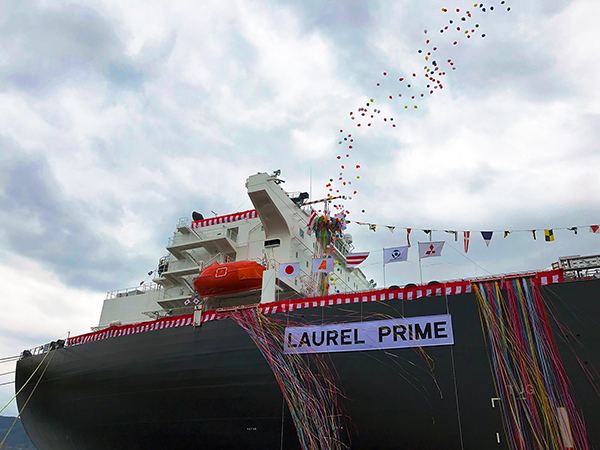 Seventh Vessel of Its Type for Astomos Energy Tokyo - December 14, 2018 • Energy efficient vessel compatible with major LPG terminals worldwide and the expanded Panama Canal • Built by MHI Marine Structure in Nagasaki, with tank holding capacity of 83,000m3 Mitsubishi Shipbuilding Co., Ltd., a Group company of Mitsubishi Heavy Industries, Ltd. (MHI) based in Yokohama, held a christening ceremony yesterday for a liquefied petroleum gas (LPG) carrier currently under construction for Astomos Energy Corporation. The new ship, named LAUREL PRIME, will be the seventh vessel of its type for Astomos Energy. In addition to energy saving performance, the ship will have the capability to adapt flexibly to major LPG terminals worldwide, as well as specifications compatible with the newly expanded Panama Canal. Completion and delivery is scheduled for the end of December, 2018. The vessel will be operated by Nippon Yusen Kaisha (NYK Line). The christening ceremony, held at the Koyagi Plant of MHI's Nagasaki Shipyard & Machinery Works, was attended by representatives of the ship owner, along with many other guests. Astomos Energy President Seiya Araki named the ship, while his wife performed the ceremonial rope cutting. The LAUREL PRIME has a length of 230m, width of 36.6m, and depth of 21.65m, with a draft of 11.1m. Deadweight tonnage is approximately 48,300 tons, with total tank holding capacity of 83,000m3. Launching took place on September 12, 2018. Construction was managed by MHI Group Company, Mitsubishi Heavy Industries Marine Structure Co., Ltd., based in Nagasaki. The new vessel utilizes a unique hull form derived from the design and manufacturing capabilities, providing exceptional fuel efficiency and high compatibility to the various LPG terminals in the world. This is the 11th vessel in its LPG carrier series. Going forward, Mitsubishi Shipbuilding and MHI Marine Structure will continue development of LPG carriers with exceptional fuel efficiency and sustainable performance, in order to contribute to stable energy supplies and environmental conservation.