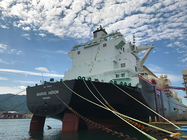 Second of Two LNG carriers for Mitsui & Co. to be used in the U.S. Cameron LNG Project • LNG carrying capacity and fuel performance significantly improved through enhanced hull structure and hybrid propulsion system • Order received through MI LNG Company; construction performed by Mitsubishi Heavy Industries Marine Structure Tokyo - September 2, 2019 Mitsubishi Shipbuilding Co., Ltd., a Group company of Mitsubishi Heavy Industries, Ltd. (MHI) based in Yokohama, held the christening ceremony on August 30 for a next-generation LNG (liquefied natural gas) carrier under construction for Mitsui & Co., Ltd. The ship, named MARVEL HERON, is Mitsubishi Shipbuilding's newest carrier that achieves significant improvements in both LNG carrying capacity and fuel performance through adoption of a more efficient hull structure and an innovative hybrid propulsion system. After completion scheduled in September, the MARVEL HERON will go into service primarily transporting LNG for the Cameron LNG Project, in which Mitsui is a participating partner. The well-attended christening ceremony was held at the Koyagi Plant of MHI's Nagasaki Shipyard & Machinery Works. Mitsui Representative Director and Executive Managing Officer Yoshio Kometani proclaimed the formal christening, and Mrs. Kometani performed the ceremonial rope cut. The MARVEL HERON is the second LNG carrier of its type built by Mitsubishi Shipbuilding for Mitsui. It features LOA (length overall) of 297.5m, width of 48.94m, depth of 27.5m, and draft of 11.4m. Deadweight capacity is approximately 79,000 tons, and the total holding capacity of the tanks is 177,000m3. The order for the MARVEL HERON was received through MI LNG Company, Limited, a joint venture established by MHI and Imabari Shipbuilding Co., Ltd. to design and market newbuilding LNG carriers. Construction was undertaken by Mitsubishi Heavy Industries Marine Structure Co., Ltd., a Nagasaki-based MHI Group company, and launching took place on February 2, 2019. Both ships ordered by Mitsui for the Cameron LNG Project are named after migratory birds. Besides the MARVEL HERON, its sister ship was christened the MARVEL CRANE at a ceremony held on February 21, 2019. The MARVEL CRANE was handed over to Mitsui on March 28 and is now in service. The new vessels are equipped with apple-shaped tanks refined from MOSS-type spherical tanks, which are known for their outstanding reliability (Note1). This innovative tank structure results in increased LNG carrying capacity while keeping the ship's beam within the parameters of passage through the newly expanded Panama Canal. Ship propulsion is performed by "STaGE," a hybrid system combining a steam turbine and gas-fired engines (Note2). It consists of MHI's proprietary high-efficiency reheat Ultra Steam Turbine (UST) for ships, a dual-fuel diesel engine that accommodates both gas and oil, and an electrically propelled engine. Effective use of the waste heat from the engines to drive the UST results in significantly enhanced plant efficiency, enabling efficient navigation at all speeds, high to low. Going forward, Mitsubishi Shipbuilding and Mitsubishi Heavy Industries Marine Structure will continue to contribute to stable energy supplies and environmental conservation through the construction of next-generation LNG carriers that offer superlative fuel efficiency and environmental performance. Note 1: Moss tanks are spherical tanks fixed to a ship’s hull by a cylindrical skirt. Note 2: STaGE is an acronym derived from "Steam Turbine and Gas Engines."