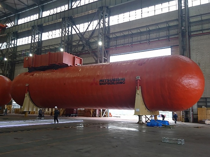LNG Fuel tank Image by Mitsubishi Heavy Industries, Ltd. Note: EEDI Phase 3 requirements: Regulations on the energy efficiency of ships based on the 2013 revision of the International Convention on the Prevention of Ship Pollution 1997 Protocol (Appendix VI to the MARPOL Convention). EEDI (Energy Efficiency Design Index) is the number of grams of carbon dioxide (CO2) required to carry 1 ton of cargo for 1 mile, and the reduction rate from the baseline (baseline) will be gradually enhanced. Car carriers are required to implement reductions of 5% by 2015 (Phase 1), 15% by 2020 (Phase 2), and 30% by 2025 (Phase 3). Mitsubishi Heavy Industries, Ltd. press release