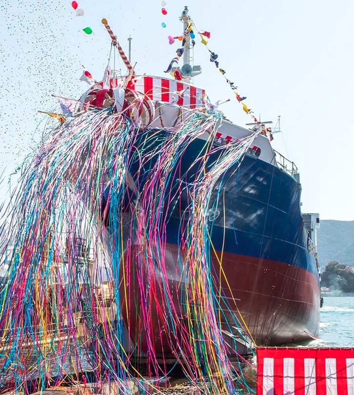Launch ceremony at the MHI Shimonoseki Shipyard & Machinery Works. Image by Mitsubishi Heavy Industries, Ltd.