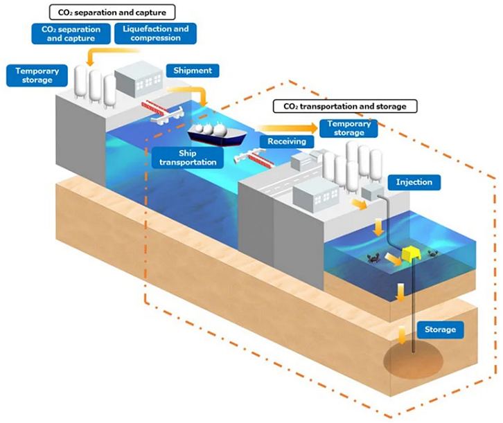 Image of large-scale and wide-area CCS value chain project using ship transportation
