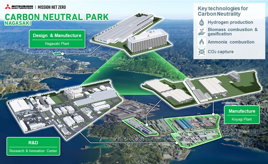 • The existing development, design and production bases in Nagasaki District will be utilized, to provide solutions that will contribute to realization of a carbon neutral world Tokyo, August 7, 2023 Mitsubishi Heavy Industries, Ltd. (MHI) has launched operations of Nagasaki Carbon Neutral Park, a center dedicated to development of MHI Group's energy decarbonization technologies. Located in Nagasaki city, the new base will be progressively expanded over the coming years. Nagasaki Carbon Neutral Park will undertake development mainly of fuel production, combustion and CO2 capture technologies at existing research facilities at the Nagasaki District Research & Innovation Center which are currently dedicated to production of hydrogen and biomass fuels, ammonia combustion and CO2 capture. Applying the thermal energy system design and manufacturing capabilities developed at Nagasaki Shipyard & Machinery Works' Nagasaki and Koyagi plants, Nagasaki Carbon Neutral Park will accelerate R&D toward product commercialization and business viability. In the area of hydrogen production, development will focus on next-generation technologies such as advanced water electrolyzers that operate by solid oxide electrolysis cells (SOEC), and turquoise hydrogen produced by pyrolysis of methane into hydrogen and solid carbon. Key technologies developed at Nagasaki Carbon Neutral Park will subsequently undergo hydrogen production demonstration at Takasago Hydrogen Park (Note1) in Hyogo Prefecture, as well as demonstration of power generation in combination with a hydrogen gas turbine. In the area of biomass fuel production, development will target commercialization of synthetic fuel production facilities, including sustainable aviation fuels (SAF) produced by biomass gasification integrated Fischer-Tropsch synthesis (Note2). In the area of ammonia combustion, testing will be performed using an actual size burner of a large-scale combustion test furnace located within the Nagasaki district, with plans calling for co-firing with at least 50% ammonia demonstration testing at a power plant in FY2024 or soon thereafter.