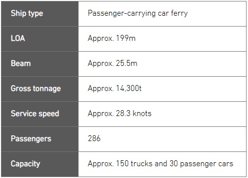First of Two Large Car Ferries Ordered by Shinnihonkai Ferry and Japan Railway Construction, Transport and Technology Agency • First ferry in Japan featuring buttock-flow stern hull(Note1) with ducktail(Note2), enabling 5% savings in energy compared to earlier ships • After handover in December 2025, ferry will go into service between Otaru and Maizuru Tokyo, April 29, 2025 Mitsubishi Shipbuilding Co., Ltd., a Mitsubishi Heavy Industries (MHI) Group company, today held a christening and launch ceremony for the first of two large car ferries ordered by Shinnihonkai Ferry Co., Ltd. and Japan Railway Construction, Transport and Technology Agency (JRTT). The ceremony took place at the Enoura Plant of MHI's Shimonoseki Shipyard & Machinery Works in Yamaguchi Prefecture. The new ferry will serve on a shipping route between the city of Otaru in Hokkaido and Maizuru in Kyoto Prefecture. At the ceremony Shinnihonkai Ferry President Yasuo Iritani christened the new ferry "KEYAKI," the Japanese word for a species of native Zelkova trees. The ceremonial rope cut was performed by soprano Ayako Tanaka. The ship's handover is scheduled for December 2025 following completion of outfitting work and sea trials. The KEYAKI is the ninth ferry built by Mitsubishi Shipbuilding for Shinnihonkai Ferry. The KEYAKI is the first ferry in Japan to adopt the latest energy-saving hull form, including a KATANA BOW and buttock-flow stern hull (Note1) with ducktail (Note2). Propulsion resistance is suppressed by an energy-saving roll-damping system combining an anti-rolling tank (Note3) and fin stabilizers (Note4). Together these innovations enable a 5% savings in energy compared to earlier vessels. Japan is currently undergoing a modal shift to sea transport in an effort to mitigate environmental impact by reducing CO2 emissions and to compensate for truck driver shortages arising from workstyle reforms. This shift has brought utilization of ferry transport into sharp relief. Going forward, Mitsubishi Shipbuilding will continue to contribute to active use of sea transport and environmental protection, resolving diverse issues together with its business partners through construction of ferries that provide stable sea transport together with outstanding energy and environmental performance.