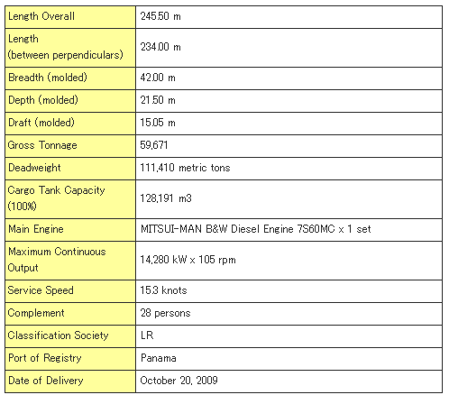 Mitsui Engineering & Shipbuilding Co., Ltd. completed and delivered a 110,000 dwt type double hull crude oil tanker M.T. "PACIFIC GALAXY" (MES Hull No. 1712) at its Chiba Works to South Dignity Shipping Inc., Panama, a subsidiary of Nan Fung Shipping Limited., Liberia on October 20, 2009. This is the 14th Aframax Tanker of 42 meter beam with the largest deadweight and the largest cargo tank capacity.