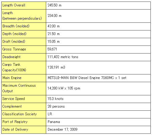 1. The vessel has a cargo tank capacity of 127,000 m3 and deadweight of 110,000 tons, which are the largest class for Aframax tanker with 42 meter beam.