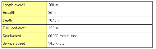 We have two types of specification, one is Premium model and the other is Standard model. Premium model achieves the reduction of CO2 emission by about 21% on ton-mile basis. Furthermore, CO2 emission will be reduced up to about 30% by applying optional soft/hardware. In addition, we will proceed with developments on measures to meet SOx and NOx emission controls, which will become increasingly severe in the future. Besides, proactive design for future installation of the ballast water treatment system is adopted, which is a hot current topic among maritime industries. Principal Particulars