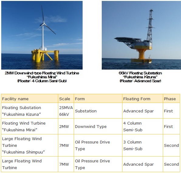A consortium comprising of Marubeni (project integrator), the University of Tokyo (technical advisor), Mitsubishi, Mitsubishi Heavy Industries, Japan Marine United, Mitsui Engineering & Shipbuilding, Nippon Steel& Sumitomo Metal Corporation, Hitachi, Furukawa Electric, Shimizu, and Mizuho Information &Research have been participating in an experimental offshore floating wind farm project sponsored by the Ministry of Economy, Trade and Industry since March 2012.