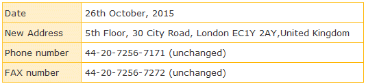 Office relocation of MITSUI ZOSEN EUROPE LIMITED (London) October 27, 2015 MITSUI ZOSEN EUROPE LIMITED has relocated as follows. (MES) Mitsui Engineering & Shipbuilding Co. Ltd. press release