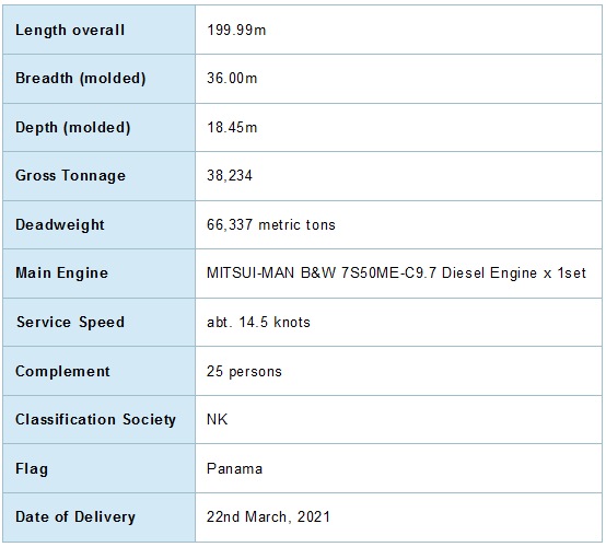 JAL KALPAVRIKSH. Image by Mitsui Engineering & Shipbuilding Co. Ltd. Principal Particulars