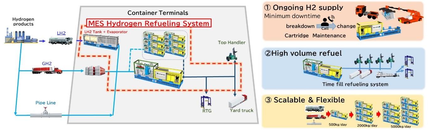 Jun 23,2025 MITSUI E&S Co., Ltd. (Headquarters: Chuo-ku, Tokyo; President and CEO: Takeyuki Takahashi; hereinafter "MITSUI E&S") has been selected for a subsidy under the "Technology Development Project for Building a Hydrogen Society / Regional Hydrogen Utilization Technology Development" (Note 1) by the New Energy and Industrial Technology Development Organization (NEDO). The selected project, titled "Research and Development of a Hydrogen Refueling System for Hydrogen-Powered Cargo Handling Equipment" (hereinafter "the Project"), aims to support the widespread adoption of hydrogen-powered cargo handling equipment. In the field of international logistics, particularly in maritime container transport, reducing CO₂ emissions from cargo handling equipment has become an urgent issue. In response, MITSUI E&S, with support from NEDO, successfully developed and demonstrated the world's first rubber-tired gantry crane (RTGC) powered by a fuel cell (FC) (Note 2). As hydrogen-powered cargo handling equipment is being tested at port container terminals as part of decarbonization efforts, MITSUI E&S will now leverage the results of this demonstration to develop a hydrogen refueling system essential for the widespread adoption of such equipment. The Project aims to develop a proprietary hydrogen refueling system capable of efficiently supplying large volumes of hydrogen fuel to various types of cargo handling equipment, even in scenarios where hydrogen-powered machinery is widely deployed. The scope of the Project includes research into the necessary requirements and equipment specifications, as well as investigations into relevant regulations and certifications required for operational deployment. Through this initiative, the hydrogen refueling system developed is expected to accelerate the decarbonization of port container terminals and significantly reduce CO₂ emissions. Furthermore, it will support the adoption of hydrogen-powered cargo handling equipment both in Japan and internationally, contributing to the growth of related industries and the creation of new employment opportunities. MITSUI E&S remains committed to leveraging the knowledge and technologies gained through this Project to further advance efforts toward realizing a hydrogen-based society.