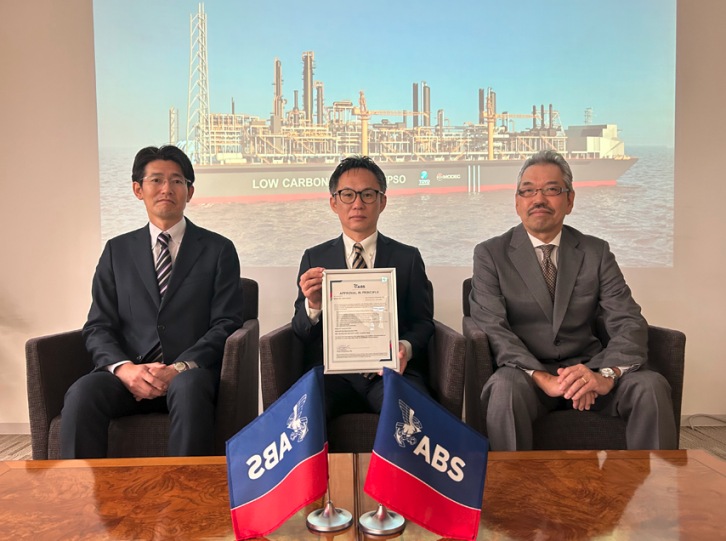Photo from the AiP award ceremony (Right to Left) Mr. Makoto Oba, ABS Business Director; Mr. Kazutaka Murayama, Function Manager, Engineering Department and Project manager of Blue Ammonia FPSO development, MODEC, Inc.; Mr. Katsuhiro Nishizawa, Deputy Division Director, Carbon Neutral Business Division, Toyo Engineering Corporation *1 Blue ammonia : a type of ammonia that is produced using natural gas where CO2 emissions have been mitigated by CCS or similar technologies. MODEC Inc., Ltd. press release