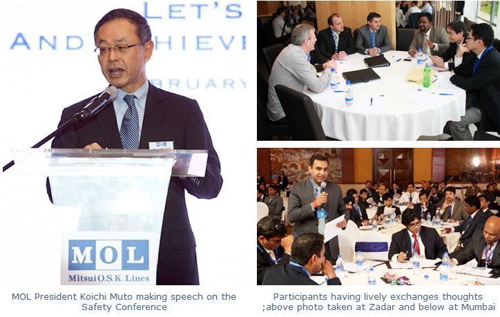 Each conference opened with powerful messages from MOL Chairman Akimitsu Ashida and President Koichi Muto. "This year marks the 130th anniversary of MOL. For our growth strategy, establishing and maintaining safe operation is one of the most important issues for gaining customer's trust. Thus we hope and anticipate that you seafarers who are on the front lines will do your very best to maintain a high level of awareness of safe operation and conduct your duties in such a way as to ensure safe operation of your vessels." Managing Executive Officer Masaaki Nemoto, who is also Director-General of the Safety Operations Headquarters, and a number of other MOL executives and staffs also participated in the conference, and actively exchanged opinions with seafarers through presentations, group discussions, and so on, focusing on main themes, such as "Preventing serious marine accidents experienced during the past few years", "How can we detect unpredictable troubles," and "Eliminating work-related Injuries of inexperienced crew". Everyone attending the conferences performed the MOL Body FIT (Function Improvement Training ) Exercises, which MOL developed to help improve seafarers' physical functions with the aim of helping prevent work-related injuries. The exercises helped seafarers to renew their determination to eliminate fatal accidents onboard. These safety conferences have been conducted annually since 2007 in major countries where our seafarers come from, to explaining our action plans to enhance safety operation in MOL group and to exchange opinions between seafarers and managements. We will continue these conferences in our quest for becoming the world leader in safe operation.