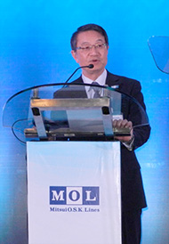 MOL President & CEO Junichiro Ikeda making speech Tokyo - November 20, 2015 Mitsui O.S.K. Lines, Ltd. (MOL; President & CEO: Junichiro Ikeda) today announced that the company invited customers and others concerned to receptions in Mumbai and Delhi on November 16 and 17, respectively. In all, about 330 people attended the events, including MOL group business partners. In his address to the reception guests, MOL President Ikeda noted that MOL views India as a region with huge potential for future growth, and as world's leading corporate group in multimodal transport, it is committed to meeting various logistics needs and increasing its group-wide recognition and brand power. He also highlighted "Reliability," one of the key words in the "MOL CHART" expression of MOL Group values, which was introduced in April.Ikeda expressed the group's determination to develop reliable services in India and meet customer needs through all of its business divisions, while eliminating the barriers among them. Ties between MOL and India date back to 1912 when a representative office was established in Bombay (now Mumbai). For over 100 years since then, MOL has developed its businesses in India, centering on liner operations. In the bulkship division, MOL started land transport and yard operation for its car carrier business at the port of Ennore in 2010, and also took part in the Petronet LNG Project, which brought India's first imports of liquefied natural gas. Through these initiatives, MOL has steadily built a track record in India. Mitsui O.S.K. Lines Maritime (India), which started operation in 1995, is responsible for recruitment, training, and allocation of Indian mariners, playing a key role in ensuring the safe operation of MOL-operated vessels. MOL, as the corporate group in multimodal transport continually takes a proactive stance in meeting various customer needs and contributing to economic growth in India and around the world.