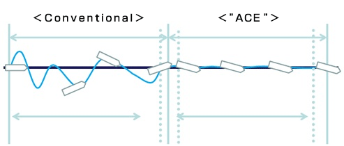 Comparison of the conventional control system (left) and the new route control system using ACE (right) (*) "Fleet Monitor" is a vessel operation monitoring system developed by Mitsui Engineering & Shipbuilding Co., Ltd., as an Internet-based ship-to-shore integrated information infrastructure system that manages ship operation while sharing operation information of vessels in service with offices on land. Mitsui O.S.K. Lines, Ltd. press release |