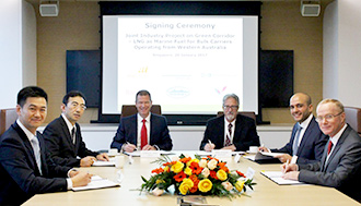 Initiative on Environmental Protection Ahead of International Rules Tokyo - January 24, 2017 Mitsui O.S.K. Lines, Ltd. (MOL; President & CEO: Junichiro Ikeda) today announced that it has reached an agreement to launch a joint study of a liquefied natural gas (LNG)-fueled Capesize bulker with five other companies- BHP Billiton, DNV GL, Rio Tinto, Shanghai Merchant Ship Design and Research Institute (SDARI) and Woodside Energy. The parties signed a letter of agreement at a ceremony held in Singapore on January 20. The joint research project, called "Green Corridor," aims to reduce merchant vessels' emissions of NOX and SOX (*) in advance of international treaties calling for stricter emissions standards, and will examine the technological and economic feasibility of an LNG-fueled bulker. The MOL Group continually takes a proactive approach to developing and adopting technologies that contribute to reducing environmental impact and enhancing safe operation, while providing safe and reliable transport services. (*) SOX emissions from vessels are addressed in the International Convention for the Prevention of Pollution from Ships (MARPOL) Treaty Annex VI (prevention of air pollution), and vessels are required to use bunker fuel with a sulfur content of 0.1% or less in Emission Control Areas (ECAs) such as North America. In general sea areas (all excluding ECAs), the treaty is expected to reduce the maximum sulfur content of bunker in use from the current standard 3.5% to 0.5% in 2020. The regulation will be applied to vessels already in service. Mitsui O.S.K. Lines, Ltd. press release |