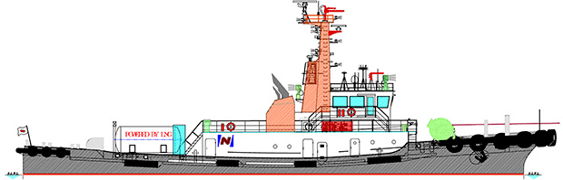 1st LNG Fueled Tugboat in Osaka Bay, Promoting "ISHIN NEXT" Tokyo - May 23, 2017 Mitsui O.S.K. Lines, Ltd. (MOL; President & CEO: Junichiro Ikeda) today announced the company's decision to build an LNG-fueled tugboat. The new tugboat, the first LNG-fueled tug in Japan, will conform to the IGF code (*1) issued in January of this year and is subject to be examined by Japan's Ministry of Land, Infrastructure, Transport and Tourism. MOL will own the tugboat, slated for construction at Kanagawa Dockyard Co., Ltd. (President: Takehito Ikoma, headquarters: Hyogo-ku, Kobe). Yanmar Co., Ltd. (President: Takehito Yamaoka, headquarters: Kita-ku, Osaka) will supply LNG-fueled engines. Osaka Gas Co., Ltd. (President: Takehiro Honjo, headquarters: Chuo-ku, Osaka) will supply LNG fuel to the tugboat. Nihon Tug-Boat Co., Ltd. (President: Shigeshi Omori, headquarters: Chuo-ku, Kobe) will operate the tugboat. The new tugboat will be deployed in Osaka Bay in April 2019. It will be equipped with high-performance dual fuel engines (*2) that allows high-speed operation and superior environmental performance, and will be the first LNG-fueled tugboat to escort large-scale freighters in Osaka Bay and the Seto Inland Sea. The development of this tugboat will also spur the initial development of an LNG fuel supply system for vessels in Osaka Bay. The tugboat will be built as an element of "ISHIN NEXT - MOL SMART SHIP PROJECT" (*3), and knowledge and expertise gained through the tugboat's development and operation will be fed back to various types of LNG-fueled ships including the environment-friendly ferry (ISHIN-II) (*4). The construction of this tugboat also reflects MOL's proactive stance in promoting LNG fuel through technological development of LNG-fueled vessels (*5) and enhancement of safe operation. MOL continually strives to promote and expand its environment and emission-free businesses, seizing opportunities presented by efforts to reduce the environmental impact of the global shipping industry.