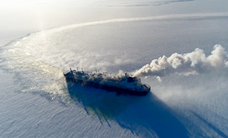 Operational commencement with MOL's 1st Vessel for World's First Ice-Breaking LNG Carrier Project Video of ice trials is available here. Tokyo - March 29, 2018 Mitsui O.S.K. Lines, Ltd. (MOL; President & CEO: Junichiro Ikeda) today announced that from March 27 to March 28 the first loading operation of the Ice-Breaking LNG Carrier Vladimir Rusanov, which was jointly ordered by MOL and China COSCO Shipping Corporation Limited (China COSCO Shipping), was conducted in the Yamal LNG plant at Sabetta port. The vessel is the first of three newbuilding vessels for MOL and China COSCO Shipping's fleets in the Yamal LNG Project, announced in July 2014(*1), and will sail under a long-term charter contract to transport LNG for the YAMAL LNG Project. The vessel left the Daewoo Shipbuilding & Marine Engineering Co., Ltd. (DSME) Okpo yard after her naming ceremony on Dec 21, 2017(*2), and headed to the Arctic Ocean through the Suez Canal for Ice trials. The ice trials took place over three weeks in the presence of MOL's technical engineers and marine experts, her Charterer Yamal LNG, her builder DSME, and the manufacturers of her main equipment. The vessel was handed over to the YAMAL LNG project after the completion of the ice trials test of the vessel's independent icebreaking capabilities in the Arctic Ocean. Constructions of the second and the third vessels for MOL and China COSCO Shipping at the Okpo yard of DSME have been progressing as originally planned, and they will be delivered to the Yamal LNG project after completion of their construction at the end of September 2018 and September 2019 respectively. The Arctic is a rich repository of natural resources, holding an estimated 13% of the world's undiscovered oil resources and 30% of its undiscovered natural gas resources, according to an assessment conducted by the U.S. Geological Survey (USGS). Investment in the next large LNG project near Russia's Yamal Peninsula is expected, giving further momentum to stable resource procurement from the Arctic Ocean via the shorter Northern Sea Route, a significant benefit for Japan's energy resource needs. Furthermore, it is anticipated that global demands for LNG as a clean energy will increase at an annual rate of 5% over the next 10 years. In particular, China, India and Southeast Asia are expected to see a large increase in LNG imports. Also, demand from Europe is expected to rise due to a recent decrease in its intraregional production of LNG. MOL continues to take a proactive stance towards new Arctic LNG projects in light of the easier access to the Arctic where there is a huge potential for natural gas and other energy resources exploitation. The company also remains focused on providing value-added transport services to customers worldwide. Specifications of Vladimir Rusanov: Length : 299.0m Breadth : 50.00m Draft : 12.00m (at ice sea sailing) LNG tank : Membrane type Cargo tank capacity : 172,000m3 Ice class/Specification : RMRS ARC7/Special specifications for Arctic environment Ice-break sailing capabilities : Icebreaker bow structure; 3-axis POD propeller aft structure Max. ice breaking capacity: 2.1m (when going astern) Shipyard : Daewoo Shipbuilding & Marine Engineering Co., Ltd. Ship Management Company : Mitsui O.S.K. Lines, Ltd. (MOL) Ownership : MOL 50%/China COSCO Shipping 50% (*1) For details, please refer to the press release on July 9, 2014: MOL signs Ship Building Contracts with DSME for ice class carriers (*2) For details, please refer to the press release on December 22, 2018: Ice-Breaking LNG Carrier for Yamal LNG Project Named Vladimir Rusanov Mitsui O.S.K. Lines, Ltd. press release |