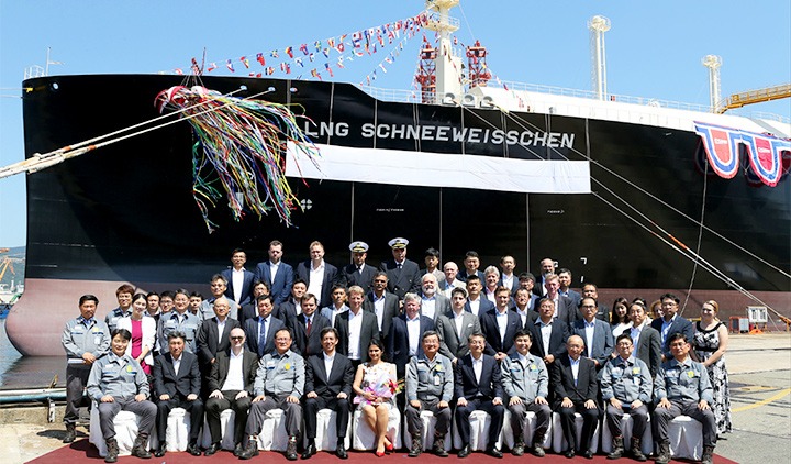 LNG Carrier Equipped with MOL's First Milestones: X-DF Propulsion Engine and MRS-F Reliquefaction System Tokyo - August 01, 2018 Mitsui O.S.K. Lines, Ltd. (MOL; President & CEO: Junichiro Ikeda) announced today that on July 31st, the LNG carrier, LNG Schneeweisschen, jointly ordered by MOL and Itochu Corporation (President: Yoshihisa Suzuki; Headquarters: Minato-ku, Tokyo) was delivered at the Okpo shipyard by Daewoo Shipbuilding & Marine Engineering Co., Ltd. (DSME) in South Korea. The ship has entered in to a Transportation Service contract for several voyages with Uniper Global Commodities SE (Headquarters: Düsseldorf), 100% owned by one of the largest European gas and electricity companies, Uniper SE (Headquarters: Düsseldorf; formed by the separation of E.ON's fossil fuel assets into a separate company on 1st January 2016). The LNG Schneeweisschen features two new technologies - the slow-speed two-stroke engine (X-DF) made by Winterthur Gas & Diesel, which can run on natural gas, MGO and Heavy Fuel Oil, and takes main engines efficiency to the next level; and the Methane Refrigeration System-Full Re-liquefaction (MRS-F) by DSME, which works with the high-efficiency X-DF engine to re-liquefy surplus boil off gas and returning it as LNG to the cargo tank. Both X-DF and MRS-F technologies will make LNG transport more efficient and economical. To further deepen and develop the relationship with Uniper, MOL continues to take a proactive approach in adopting cutting-edge ship technologies to provide safe, high-quality and reliable transport services and to meet increasing demand for LNG transportation, while leveraging our experience and know-how accumulated as one of world's largest owners and managers of LNG carriers.
