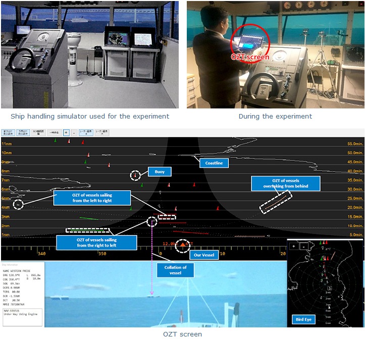 Initiative Leads to Automatic Prevention of Collisions; Marks Step toward Autonomous Sailing Tokyo - December 21, 2018 Mitsui O.S.K. Lines, Ltd. (MOL; President & CEO: Junichiro Ikeda) today announced that MOL, MOL Techno-Trade, Ltd. (President: Hirokazu Hatta; Headquarters: Chuo-ku, Tokyo), the National Maritime Research Institute (NMRI; Director General: Hiroyuki Yamato; Head Office: Mitaka-shi, Tokyo), and Tokyo University of Marine Science and Technology (TUMSAT; President: Toshio Takeuchi; Location: Minato-ku, Tokyo) jointly conducted an assessment and feasibility study on advanced navigation support systems, using the NMRI-owned ship handling risk simulator, which has a horizontal view angle of 240°C. On watch-keeping during ship operations, mariners must first be able to see an object, and then judge whether that object poses a risk to the vessel. If that is the case, the vessel must take some action to avoid the risk, such as veering, slow steaming, and so on. The "Obstacle Zone by Target" (OZT) algorithm supports mariners' ability to spot objects and determine the whether they are potential risks. Conventional collision avoidance is a highly skilled process based on maritime officers' experience and knowledge. However, by utilizing the navigation support system incorporating OZT, the vessel collision avoidance algorithm, a vessel can find an area where it can navigate safely. In addition, the system's bridge view display allows mariners to determine the positions of nearby vessels and decide which ones present risks. MOL and its partners continue research and development (Note 1) toward realization of augmented reality (AR) technology (Note 2, Note 3), which overlaps displays of information from the Automatic Identification System (AIS) and radar, camera images from the bridge, and advanced navigation support systems, with the long-range goal of autonomous sailing and automatic collision prevention utilizing OZT. MOL has moved ahead with advanced support of safe operation and reduction of its environmental impact, as set out in the "ISHIN NEXT-MOL SMART SHIP PROJECT-," started in November 2016, and aims to become customers' first choice as a logistics partner by applying ICT technology to improve service quality and efficiency.