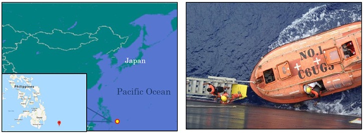 Rescued castaways and site of rescue. Image by MOL. Mitsui O.S.K. Lines, Ltd. press release