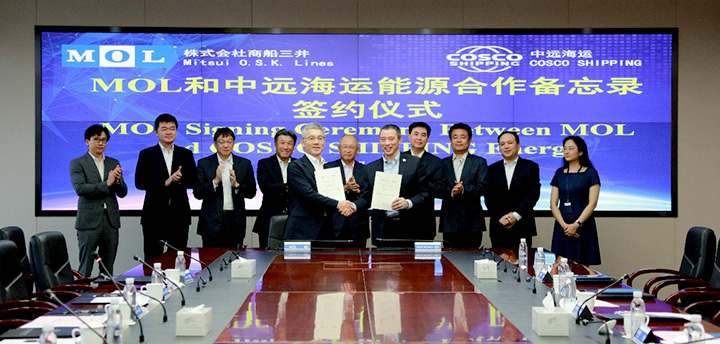 August 07, 2019 On 6 August 2019, Mitsui O.S.K. Lines, Ltd. (MOL: President & CEO: Junichiro Ikeda) and COSCO SHIPPING Energy Transportation Co., Ltd. (CSET: President: Zhu Maijin), which is a subsidiary of China COSCO Shipping Corporation Limited, signed a Memorandum of Understanding ("MOU"). The MOU recognizes and further develops the joint cooperation between the two organizations, for future LNG carrier projects and Ethane carrier projects. Over more than 10 years, MOL and CSET have established a strong and extensive partnership, which MOL and CSET jointly participate in various ongoing projects, namely the ExxonMobil DES Project*1, Australia Pacific LNG Project*2 and Yamal LNG Project*3. At the same time, MOL and CSET are aiming to develop and deepen the partnership through the joint participation for the new opportunities of upcoming LNG and Ethane carrier projects. Based on the solidified relationship through this MOU and accumulated history of cooperation over the decade, MOL and CSET, as mutual strategic partner to each other, continue to lead and contribute to the development of LNG and Ethane transportation industry.