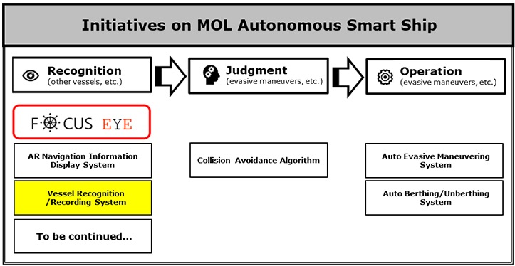 FOCUS EYE Project, Rising to the Developing Automated Watch-keeping Tokyo - September 12, 2019 Mitsui O.S.K. Lines, Ltd. (MOL; President & CEO: Junichiro Ikeda) announced the joint development, along with SenseTime Japan Ltd. (President: Shihong Lao; Headquarters: Kyoto-shi, Kyoto Prefecture)(Note 1), of a new vessel image recognition and recording system, and the system’s installation for demonstration testing aboard the cruise ship "Nippon Maru" operated by Mitsui O.S.K. Passenger Line, Ltd. (MOPAS; President: Naohiko Yamaguchi; Headquarters: Minato-ku, Tokyo). The system’s graphic recognition engine was developed by incorporating MOL’s knowledge and applying artificial intelligence (AI) deep learning technology, allowing it to recognize surrounding vessels. The system recognizes and automatically records vessels with high accuracy using a terminal equipped with a graphic processing unit (GPU) and ultrahigh-resolution cameras. The image recognition technology, which can be used even at night or during other periods of poor visibility, can detect small vessels (*) that are not recognizable by vessel automatic identification systems (AIS). MOL views advanced image recognition as an underlying technology needed for automated watch-keeping, as the company works to realize the autonomous smart ships of the future. * International treaty and domestic law require vessels to be equipped with AIS, but the regulations do not apply to ocean-going freighters of less than 300 gross tons and coastal vessels of less than 500 gross tons. Since this system automatically records image data, MOL plans to carefully review the accumulated data and use it to further enhance the image recognition engine’s analysis accuracy. MOL positions the navigation support system featuring image recognition, such as the AR voyage information display system (Note 2), which is already in practical use, as part of its challenge project, called the "FOCUS EYE" series (Note 3). The company continues to develop and modify the system, which supports crewmembers’ watch-keeping while underway, to enhance safe operation and speed up the automation of watch-keeping, with the long-term goal of realizing autonomous smart ships (please refer to Notes 4 and 5 and the figure below). MOL has moved ahead with advanced support of safe operation and reduction of its environmental impact, as set out in the "ISHIN NEXT - MOL SMART SHIP PROJECT -," launched in November 2016, and aims to become the customers' first choice as a logistics partner by applying information and communications technology (ICT) to improve service quality and efficiency.