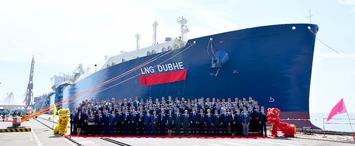 The first LNG carrier out of four built in China for the project Tokyo - September 25, 2019 Mitsui O.S.K. Lines, Ltd. (MOL; President & CEO: Junichiro Ikeda) today announced that on 24 September, a naming ceremony for a conventional LNG carrier, jointly ordered by MOL and China COSCO Shipping Corporation Limited (China COSCO Shipping), was held at Hudong-Zhonghua Shipbuilding (Group) Co., Ltd. (Hudong) As many participants in the Yamal LNG project looked on, the newbuilt vessel was named the "LNG DUBHE" at the Hudong shipyard. The vessel was named “LNG DUBHE” after a star in the constellation Ursa Major and is the first of four newbuilding conventional LNG Carriers for the Yamal LNG Project announced at the end of June, 2017. The LNG DUBHE is scheduled to go into LNG transportation service for the Yamal LNG project following its delivery at the shipyard in Hudong at the end of October. MOL delivered three ice-breaking LNG carriers to the Project between 2018 and 2019, which are currently engaged in LNG transportation in the Northern Sea Route. For the time being, LNG DUBHE will be engaged in the transport of the Project's LNG from transshipment terminals in Europe or a location where Ship-to-ship transfer operations are carried out. MOL has been operating 10 LNG carriers built in China for other projects, and LNG DUBHE will be the 11th LNG carrier built in China among our fleet. By taking advantage of the experience gained through these Chinese building projects, as well as the assignment of technical experts to Hudong to form a multinational shipbuilding supervision team made up of approximately 40 members, the LNG carriers for the Yamal project are being built to an outstanding quality level. MOL will help ensure a stable LNG supply for the Yamal LNG project by completing the construction of four LNG carriers as scheduled and subsequently serving safe LNG transportation. MOL is proactive in acquiring new projects, utilizing its strong relationship with China COSCO Shipping and Hudong, and leveraging its knowledge and experience in international cooperative works.