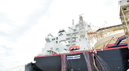 Will Transport Shale Gas-derived LNG from Cameron Project in U.S. Tokyo - September 27, 2019 Mitsui O.S.K. Lines, Ltd. (MOL; President & CEO: Junichiro Ikeda) today announced the delivery of the LNG carrier MARVEL HERON. Before the delivery, on August 30, Mitsubishi Shipbuilding Co., Ltd. (MHIMSB; President: Koji Okura; Headquarters: Nishi-ku, Yokohama) held a naming ceremony at the Nagasaki Shipyard Koyagi Plant of Mitsubishi Heavy Industries, Ltd. . As a crowd of VIPs and well-wishers looked on, the vessel was named the MARVEL HERON by Mitsui & Co., Ltd. (Mitsui & Co.; President & CEO: Tatsuo Yasunaga; Headquarters: Chiyoda-ku, Tokyo) Executive Managing Officer Yoshio Kometani. The MARVEL HERON is the second of the three newbuilding LNG carriers, that will sail under charter contracts signed with Mitsui & Co. in September 2014 and January 2015. The vessels will mainly transport LNG from the Mitsui & Co.-backed Cameron LNG project in the U.S. state of Louisiana. The MARVEL HERON adopts the hybrid dual-shaft Steam Turbine and Gas Engine (STaGE) propulsion system. This is an environment-friendly, economically superior design, which achieves further reduction in fuel costs while minimizing CO2 emissions. Leveraging MOL's accumulated experience and knowledge as one of the world's leading LNG carrier owners and management companies, MOL continues to fully meet customer needs in LNG procurement, offering a safe, high-quality and efficient LNG transport service.