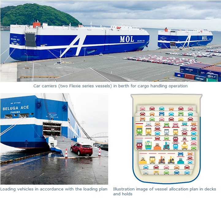 Significantly Improving Efficiency in Planning and Validation with 'Mathematical Optimization' Tokyo - September 30, 2019 Mitsui O.S.K. Lines, Ltd. (MOL; President & CEO: Juinichiro Ikeda) and its group company MOL Information Systems, Ltd. (President: Tsuyoshi Yoshida; Headquarters: Minato-ku, Tokyo) today announced that, along with Associate Professor Shunji Umetani (Note 1) of Graduate School of Information Science and Technology, Osaka University, they have successfully developed a vessel allocation plan and cargo loading plan (Note 2) for car carriers based on "mathematical optimization," (Note 3) one of the fundamental technologies of artificial intelligence (AI). This technological advance could allow MOL personnel to complete vessel allocation and loading plans more quickly than ever before. MOL operates about 100 car carriers, and in general, cargo capacity per ship is around 5,000 standard passenger cars. In recent years, transport and logistics patterns of automakers and other shippers have been diversifying, and efficient vessel allocation and cargo loading are absolutely essential to ensure the fleet to operate at peak effectiveness to meet customer needs. For example, when the vessel is calling several loading and unloading ports, the deck and hold in which cargo is loaded can significantly affect safety of cargo operation and its efficiency. In addition, since the order of cargo loading/unloading and hull balance during the voyage must be taken into consideration, it can take longer to develop a loading plan, depending on the plan’s level of difficulty and the skills of the planner. In this study, in cooperation with Associate Professor Umetani, two teams developed an algorithm that efficiently generates a proposed plan from an enormous number of combinations by using mathematical optimization. Both teams will assess the potential for practical use of the technology, aimed at improving services through digitalization, and significantly shortening the required time to respond to customers when transport volume or the order of port calls changes suddenly. The MOL Group continually takes a proactive stance in promoting the practical use and application of ICT and draws upon each division's specialized knowledge, with the goal of creating a shipping group that is always the customers' first choice when it comes to transport and logistics.