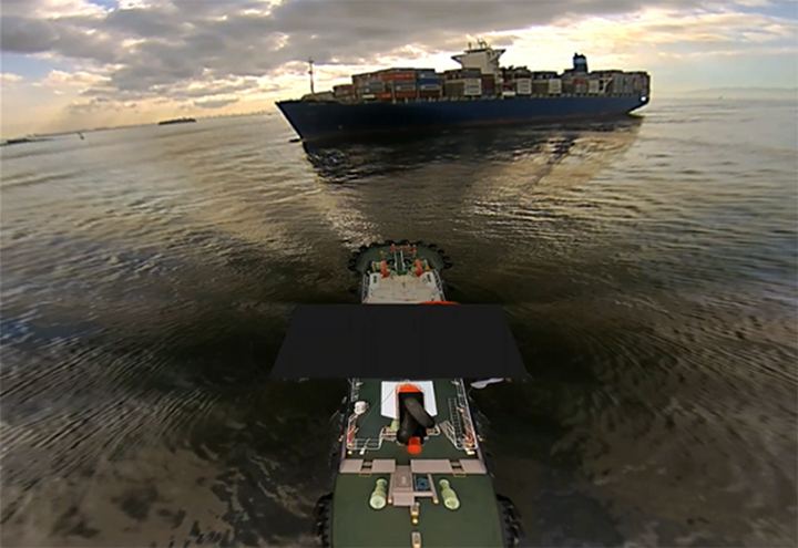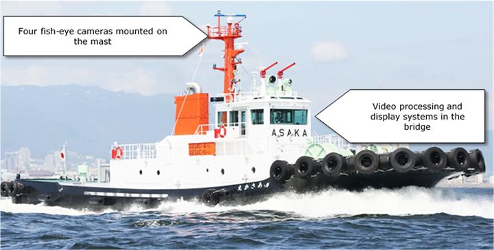 Aiming at Safer Operation with a 360° Field of View Tokyo - October 11, 2019 Mitsui O.S.K. Lines, Ltd. (MOL; President & CEO: Junichiro Ikeda) today announced that it has teamed up with Oki Electric Industry Co., Ltd. (OKI; President: Shinya Kamagami; Headquarters: Minato-ku, Tokyo), to start a joint study on the use of OKI's new "FlyingView®" bird's-eye view monitoring system to monitor a 360° field of view around a tugboat. In preparation for the study, the system was installed on the tugboat Asaka Maru (built in September 2012, 233 gross tons) owned by Nihon Tug-Boat Co., Ltd. (President: Tetsuro Nishio; Headquarters: Chuo-ku, Kobe), and a preliminary experiment was conducted. As a tugboat approaches a large vessel for assistance, only a small part of the vessel's hull can be seen from tug's bridge, and therefore, the tugboat relies on instructions through the radio from the pilot onboard the target vessel. The experiment was done in a situation with OKI's "FlyingView" setting four fish-eye cameras on the mast, and a digital compositing system and display in the bridge, making the captain to be able to objectively grasp conditions around the tugboat in real time. This makes it possible for the tug's operator to objectively recognize the boat's surrounding situations (Note 1). The boat can also instinctively grasp its distance from surrounding obstacles and other vessels, and this leads to reducing the risk of an accidental contact with the target vessel and more effectively assisting its safe berthing and unberthing. MOL positions navigation support systems featuring image recognition, such as the AR Navigation System (Note 2), which is already in practical use, as part of its challenge project, called the "FOCUS EYE" series (Note 3), aimed at developing technologies that will contribute to company's world-leading level of safe operation. It focused on OKI's "FlyingView" system as a part of the series, with the goal of speeding up its initiatives on enhancing safe operation by advancing joint development of the system, including a study of ways to adopt it on large vessels. MOL has moved ahead with advanced support of safe operation and reduction of its environmental impact, as set out in the "ISHIN NEXT - MOL SMART SHIP PROJECT -," launched in November 2016, and aims to become the customers' first choice as a logistics partner by applying information and communications technology (ICT) to improve service quality and efficiency.