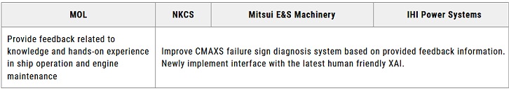 Developing 'Fleet Guardian' Targeting Eradication of Vessel Downtime Tokyo - December 24, 2019 Mitsui O.S.K. Lines, Ltd. (MOL; President & CEO: Junichiro Ikeda) today announced that it has reached an agreement for joint development of the next-generation engine failure sign diagnosis application, in partnership with ClassNK Consulting Service Co., Ltd. (NKCS; President: Daikichi Nomura; Headquarters: Chiyoda-ku, Tokyo), IHI Power Systems Co., Ltd. (President: Koji Yahagi; Headquarters: Chiyoda-ku, Tokyo), and Mitsui E&S Machinery Co., Ltd. (President: Takeyuki Takahashi; Headquarters: Chuo-ku, Tokyo). The four companies are looking to develop the application by fusing ClassNK's "CMAXS LC-A/e-GICSX"(CMAXS) (Note 1) and MOL's FOCUS "Fleet Optimal Control Unified System" (Note 2), which is intended to enhance safe operation and reduce environmental impact through advanced information and communications technology (ICT). The four companies will unite to develop a system called "Fleet Guardian," which encompasses a new implementation of Explainable AI (XAI) (Note 3), the most advanced human-friendly artificial intelligence. Fleet Guardian is expected to eliminate vessel downtime and further improve the level of safe operation by enabling crewmembers and shoreside staff to share information on a vessel's engine status in a timely manner. Schemes in the joint study that each company will emphasize: