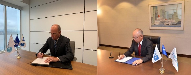 Signature on Share Purchase Agreement by Methanex CEO John Floren and MOL CEO Takeshi Hashimoto. Image by MOL.
