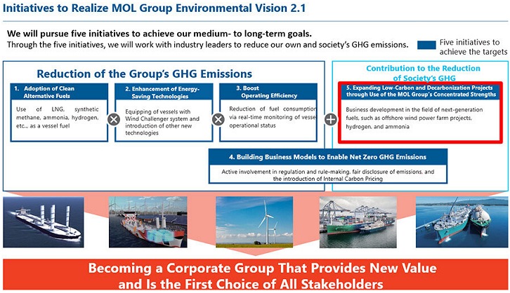 Ammonia transport vessel on the left and ammonia FSRU on the right. Image by MOL. At the same time, MOL continually contributes to customers' efforts toward decarbonization and commercialization of environmental technologies and the realization of a carbon-neutral society. (Figure 1)