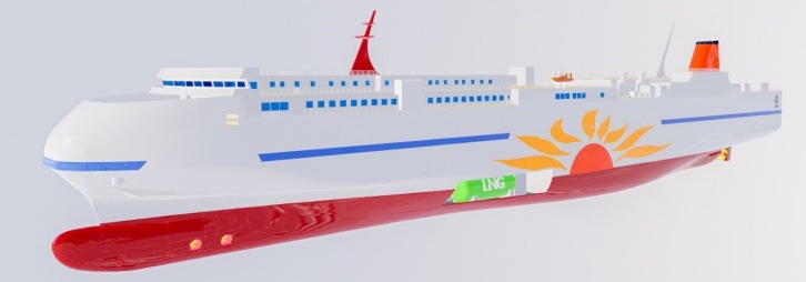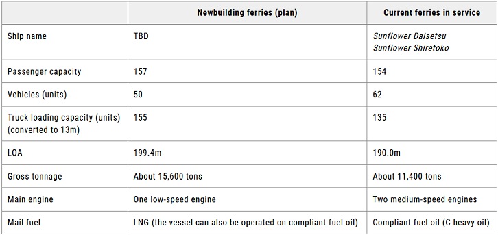 Image of the new ferry. Image by MOL. The MOL Group set the target, "With the concerted effort throughout the Group, achieve net zero GHG emissions by 2050" in "MOL Group Environmental Vision 2.1" (Note 5). It is promoting the wider adoption of LNG fuel through development and advancement of an LNG fuel supply system in Japan and overseas. It also plans to launch about 90 LNG-fueled vessels by 2030 as an initiative to introduce clean alternative fuels. The group will develop technology for LNG-fueled vessels and safe operation through development, construction, and operation of the new ferries, and take an active stance in fostering the use of LNG fuel. The MOL Group is united in working to meet the needs of customers and society at large for a cleaner environment and the realization of a low- and decarbonized society. Naikai Zosen launched development of an energy-saving device called the "Spray Tearing Plate," (Note 6) which will be installed on the new ferries to further boost energy efficiency to improve energy-saving technology. With this order for new LNG-fueled ferries, which are the first LNG-powered ferries for Naikai Zosen, the company aims to win additional orders for eco-friendly LNG-fueled coastal ferries and RoRo ships and will contribute to ocean transport as a shipyard that can build vessels to deliver advanced environmental performance. (Note 1) Please refer to the chart below for a comparison between ferries Sunflower Daisetsu and Sunflower Shiretoko currently in service and the new ferries.