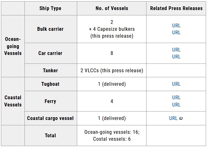 Steadily Progressing towards '90 LNG-fueled Vessels by 2030' Tokyo - August 25, 2022 Mitsui O.S.K. Lines, Ltd. (MOL; President & CEO: Takeshi Hashimoto) today announced its intent to build four Capesize bulkers and two Very Large Crude Carrier (VLCC) tankers, which will use environment-friendly liquefied natural gas (LNG) as their main fuel, and signed deals for construction with shipbuilding companies. The company signed a deal for construction of four 210,000 DWT-class Capesize bulkers with CSSC Qingdao Beihai Shipbuilding Co., Ltd. (Chairman: Chen Qing; headquarters: Qingdao, China). This is MOL's first time to order newbuilding vessel from this shipyard. The new ships are slated for delivery in succession from 2025 through 2026. MOL also concluded a contract for construction of two 309,000 DWT-class VLCCs with Kawasaki Heavy Industries Ltd. (KHI; President: Yasuhiko Hashimoto; headquarters: Minato-ku, Tokyo). This new ordered VLCC will be built by Dalian COSCO KHI Ship Engineering Co., Ltd.(Headquarters: Dalian, China) jointly operated by KHI and China COSCO Shipping Corporation Limited. This is the first LNG-fueled VLCC ordered from a Japanese tanker operator. The newbuilding VLCCs are scheduled for delivery from 2025 through 2026.
