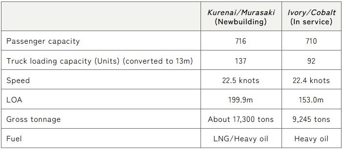 Inside the Sunflower Kurenai. Image by MOL. Comparison with ferries currently in service