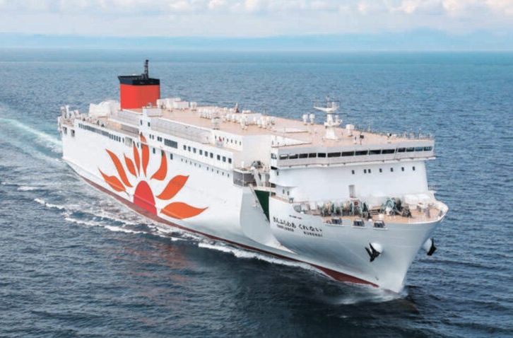The ferry serves the Osaka-Beppu route between Sunflower Ferry Terminal (Osaka Prefecture) and Beppu International Tourist Port (Oita Prefecture) as a replacement for the ferry Sunflower Ivory. Compared to earlier ferries, the new ferry offers greater transport capacity and convenience for both cargo and passenger transport. In freight transportation, it has greater capacity to load trucks and provides a larger, more comfortable room for truck drivers. In addition, the floor area of the Grand Bathroom is doubled and the number of seats in the restaurant was enlarged 1.5 times, and spacious and open public areas including a three-layer atrium were newly created. The new vessel is intended to promote and enhance the company's "Casual Cruise Concept". It is Japan's first ferry to adopt the latest environmental-friendly specifications including a high-performance dual-fuel engine, which can run on both LNG and heavy fuel oil. The use of LNG fuel is expected to reduce emissions of carbon dioxide (CO2) by about 25%, and sulfur oxide (SOx) by virtually 100%. The MOL Group set the target to achieve net zero GHG emissions by 2050 in the "MOL Group Environmental Vision 2.1" established in June 2021, and it is promoting the wider adoption of LNG fuel through development and advancement of an LNG fuel supply system in Japan and overseas. In the ferry business, MOL has already ordered four LNG-fueled ferries, including the vessel. Following the Sunflower Kurenai and the Sunflower Murasaki, the first and second LNG-fueled vessels operated by Ferry Sunflower, the company plans to build two state-of-the-art LNG-fueled ferries and put them into service in 2025 to replace vessels currently plying the Oarai-Tomakomai route operated by MOL Ferry Co., Ltd. (President & CEO: Naotoshi Omoto; Headquarters: Chiyoda-ku, Tokyo). MOL will further expand the adoption of LNG-fueled vessels, accelerate its efforts to reduce total greenhouse gas (GHG) emissions, and contribute to the realization of a low-carbon, decarbonized society through the concerted efforts of the entire Group.